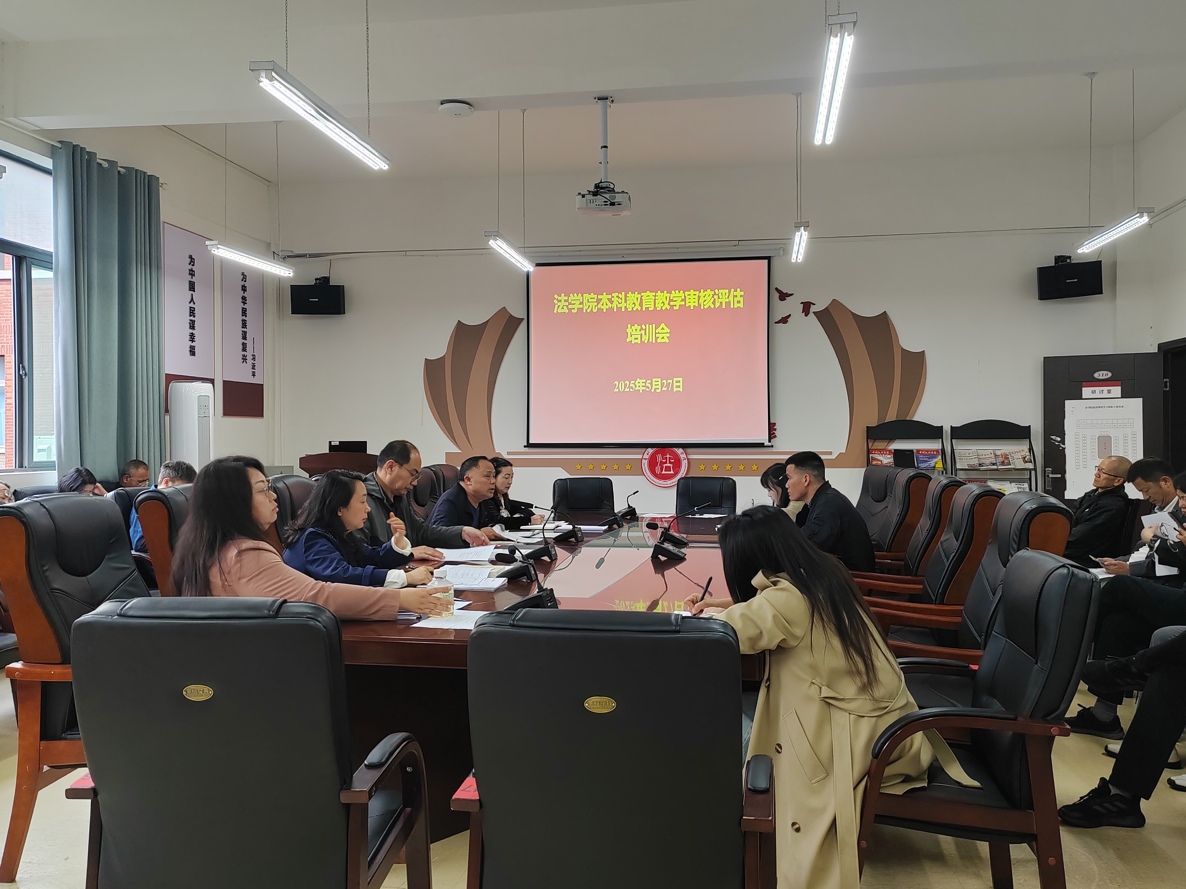 (千亿平台 图文)5月27日下午,千亿平台在文德楼310会议室召开本科教育教学审核评估应知应会培训会。学院领导、全体教职工参加培训,会议由党委委员、副院长(主持工作)曹务坤主持。
