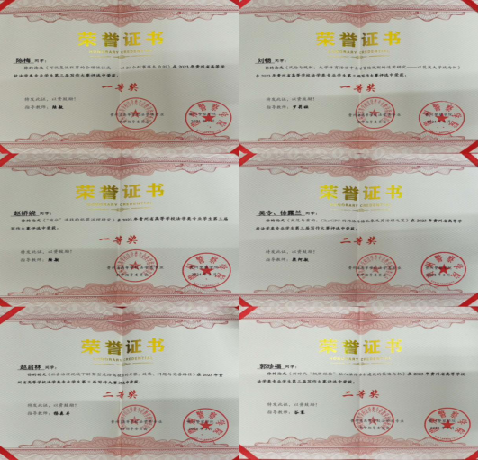 法学专业日益成为学校就业质量好、用人单位满意度高的专业。根据贵州财经大学《2023届毕业生就业质量与人才培养综合报告》,学生对工作的满意度为95.35%,工作稳定度为85.71%,公务员/群众团体和社会组织、事业单位负责人/法律类占比41.67%,远高于全校乃至全省平均水平。法学专业毕业生对学校满意度高达97.5%,对母校的推荐意愿位居全校前三。用人单位对毕业生各项能力素质满意度均达到98.35%及以上,其中用人单位对毕业生“政治素养”满意度最高,达 99.59%;其次为“动手实践能力”,达 99.59%。法商融合型法科人才培养模式成为媒体不时报道、同行高度关注的教育现象。1位老师参与的《税法》获“第四届全国高校教师创新大赛”一等奖,2位教师被评为贵州省“金师”,4名课程被评为贵州省“金课”,获省部级科学研究成果奖10余项,承担国家级课题12项,省部级课题55项,出版专著和教材30余部。2023年10月24日“黔微普法”以《陈玉梅:培育法治良才 带头探索前行的法学专家》对我校以法学学科建设为龙头带动专业建设、课程改革、围绕“四新”抓“四化”等工作进行了深度报道,5月30日我院教师撰写的《培养新时代“法商融合型”的涉外法治人才》被“学习强国”贵州学习平台发表,产生了较大的社会影响力;2022年11月17日“民主与法制时报”以《培养“法商融合”的复合型法治人才——专访千亿平台院长陈玉梅》为题,对我校近年来以学科-专业-课程“三位一体”布局积极开展“法商融合型”创新型法治人才的培养进行了专门报道。在2021年“软科”中国大学“法学”专业排名中,我校法学专业在前50%的314所高校中排名第174名。中央财经大学、云南大学、西南财经大学、山西财经大学、广东工业大学等省外高校对该成果予以了高度肯定与认可,省内的贵州民族大学、贵州中医药大学、贵州警官学院、安顺学院的法学专业建设对该成果也有不同程度地借鉴参考。